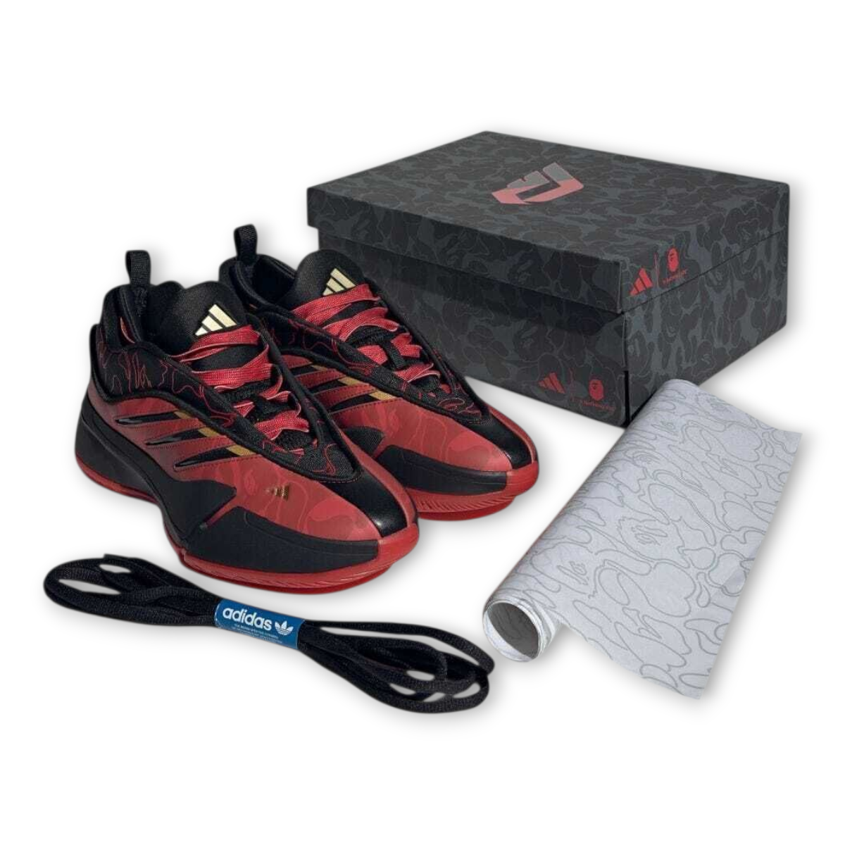 Los Adidas BAPE Dame 9 destacan por su diseño camuflaje característico, detalles premium y estructura de rendimiento que brinda estabilidad, soporte y comodidad dentro y fuera de la cancha.